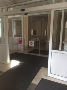 Справа от входной двери установлена система вызова сопровождающего для ЛОВЗ