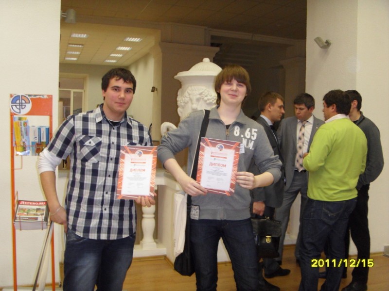 В рамках мероприятий съезда состоялось торжественное награждение студентов 4-го курса отд. «Строительство и эксплуатация зданий и сооружений»: Воробьёва Филиппа Александровича и Гулямова Глеба Юрьевича за наилучшие результаты при изучении курса «Расчёт деревянных конструкций» в программе АРМ(преподаватель Шинкович Л.Г.)