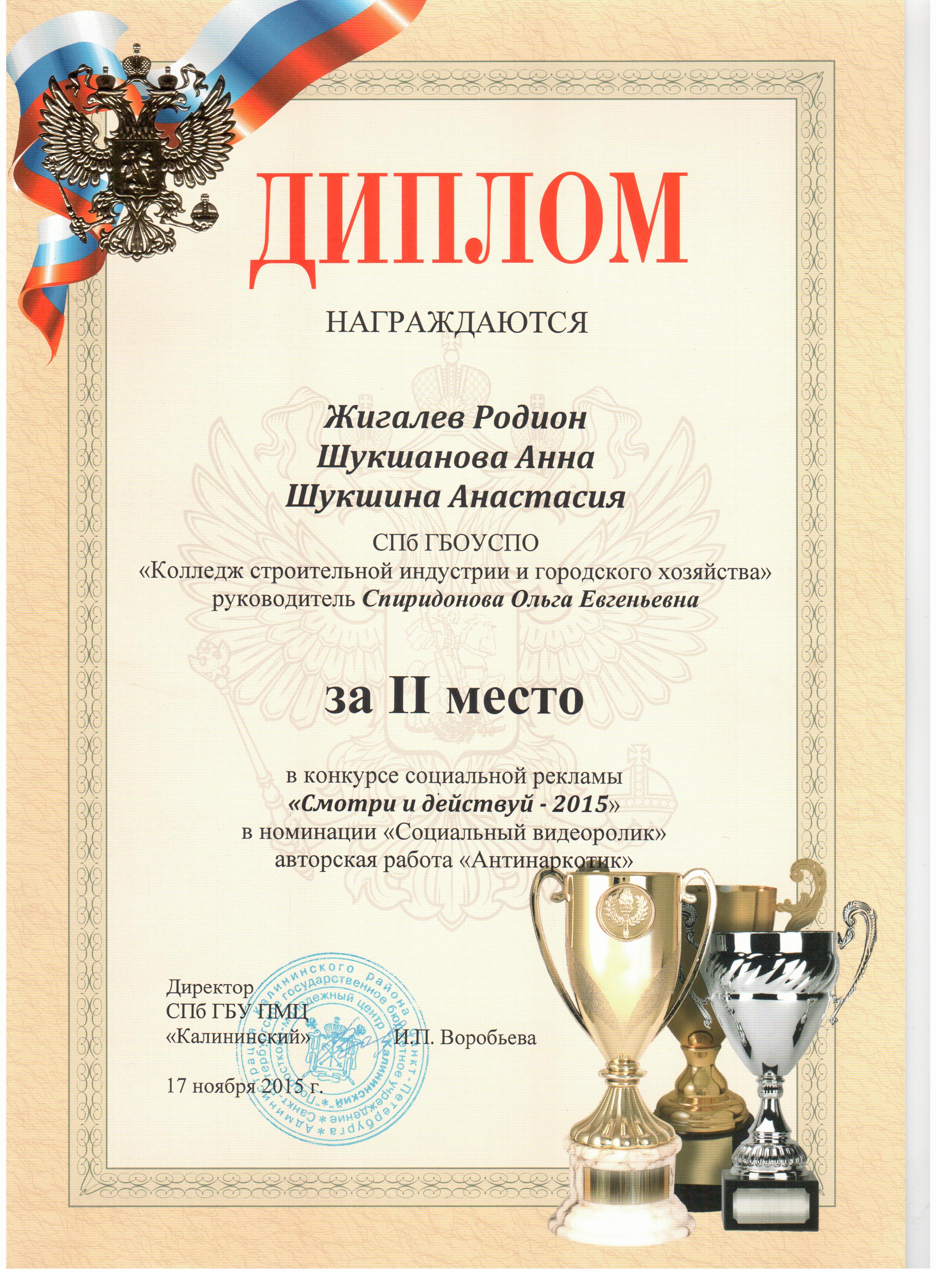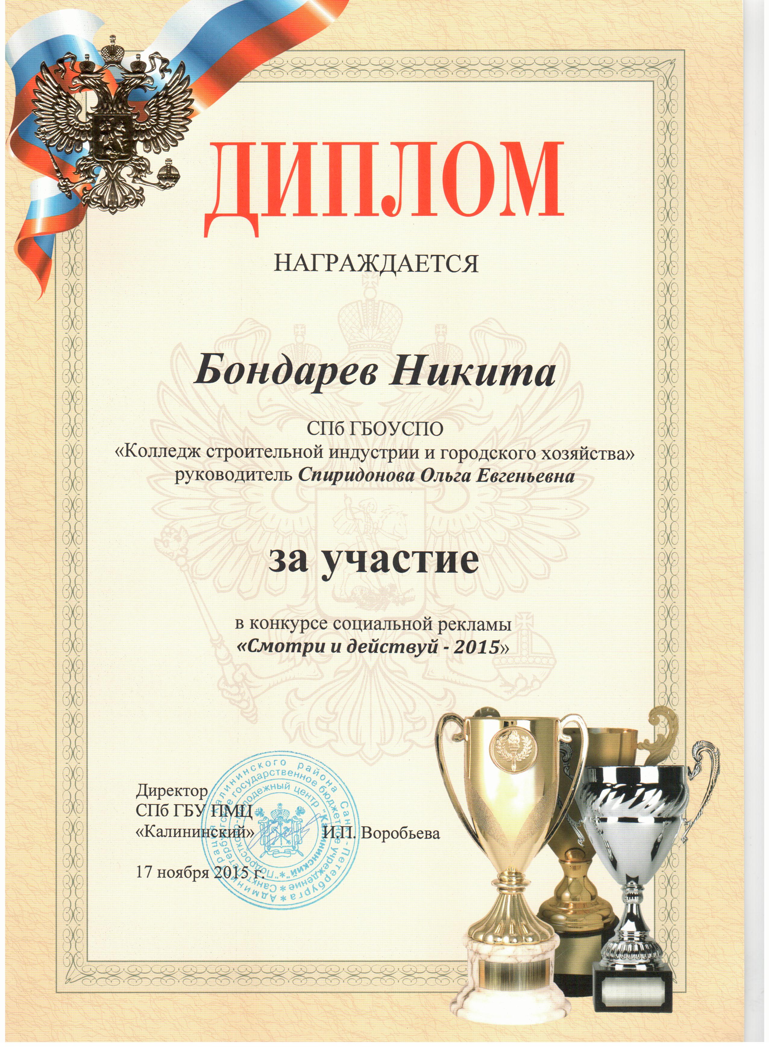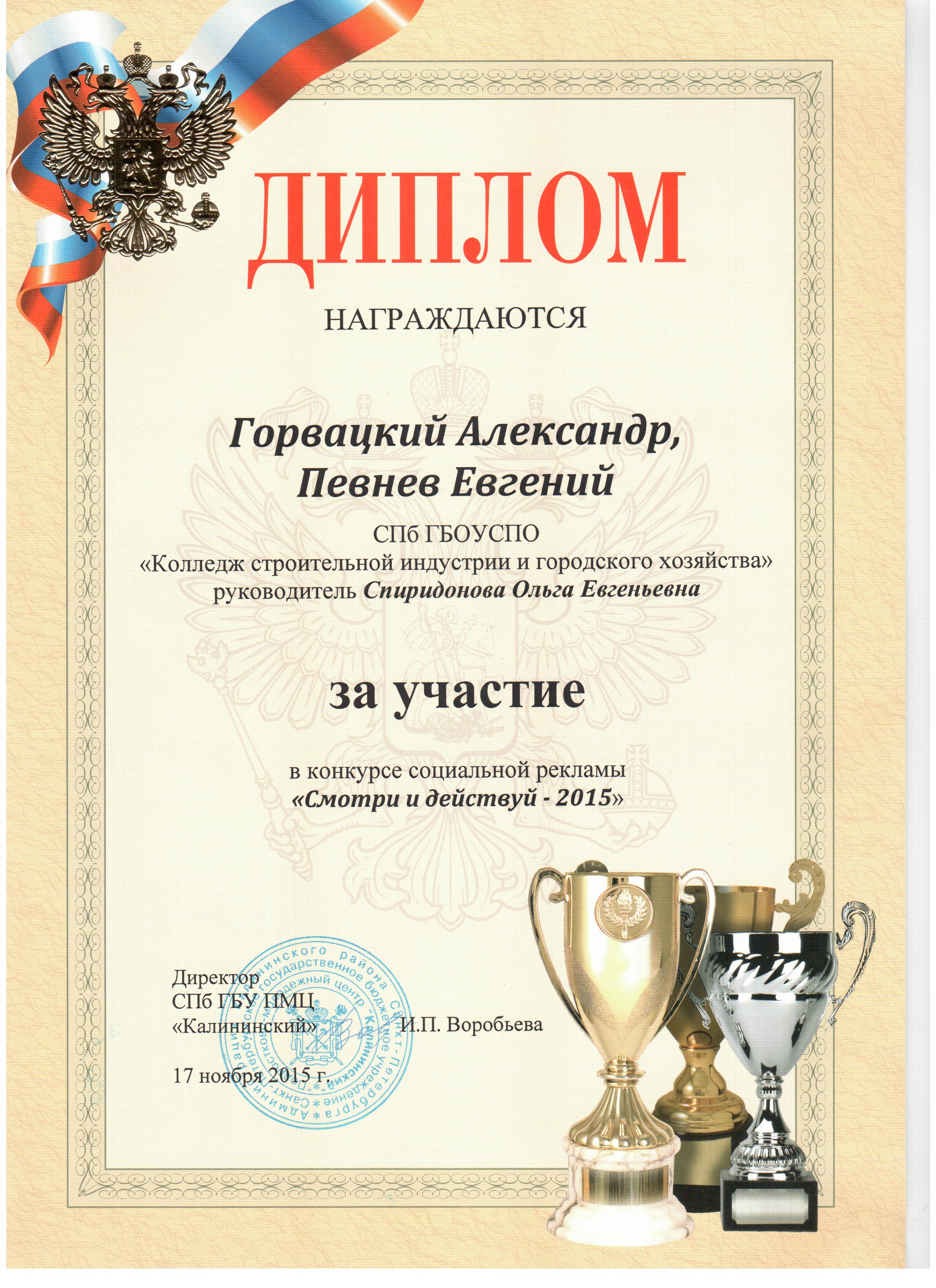 20 ноября 2015 года в Доме молодёжи «Атлант» произошло подведение итогов Конкурса социальной рекламы «Смотри и действуй – 2015». Конкурс проводится ежегодно ПМЦ «Калининский» в целях воспитания молодёжи посредством социального творчества, через создание социальной рекламы, утверждающей общечеловеческие ценности: патриотизм, нравственность, толерантность, милосердие, здоровый образ жизни. Администрация Калининского района в лице заместителя главы Васильева Игоря Михайловича, который открывал данное мероприятие, выразил поддержку и заинтересованность подобными городскими проектами.