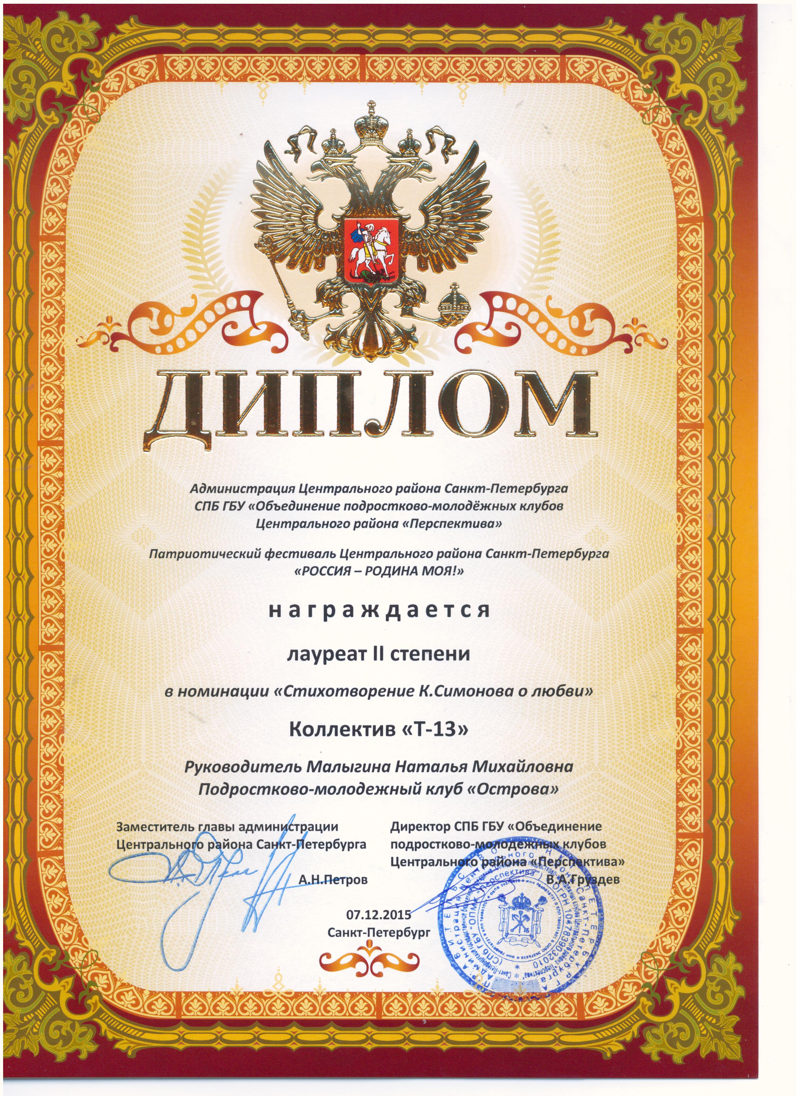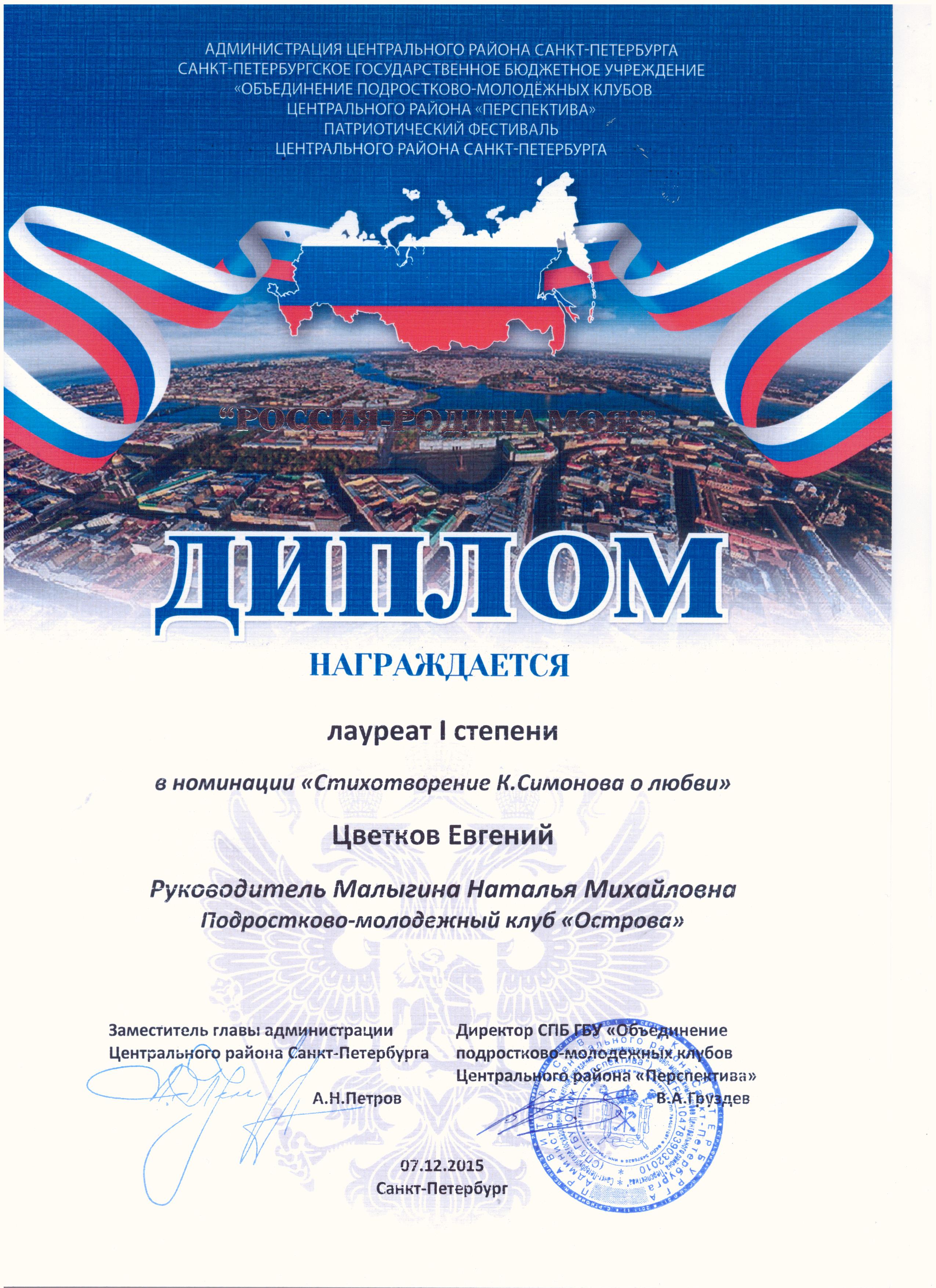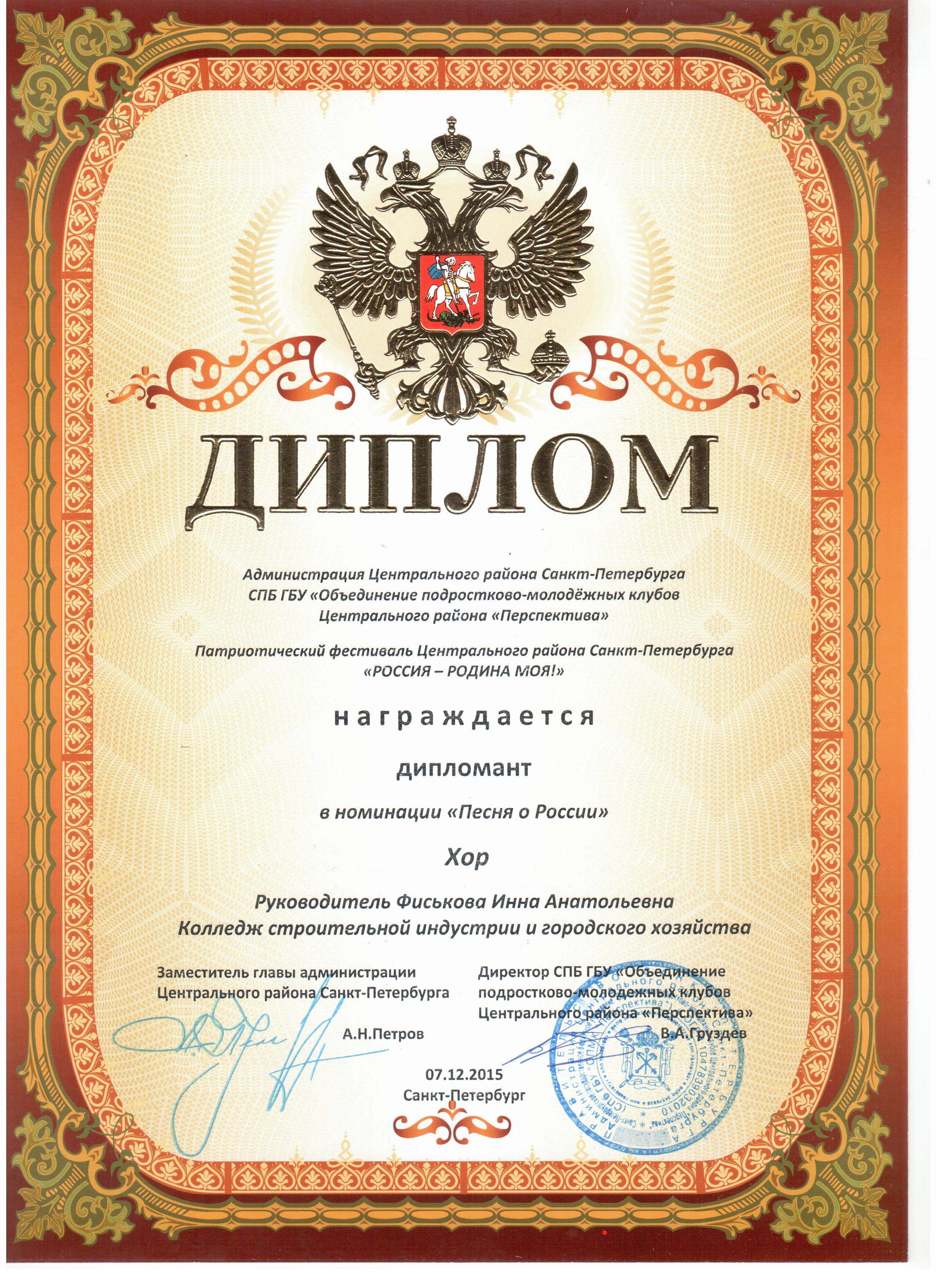 В ноябре 2015 года прошел патриотический фестиваль Центрального района «Россия-Родина моя!».