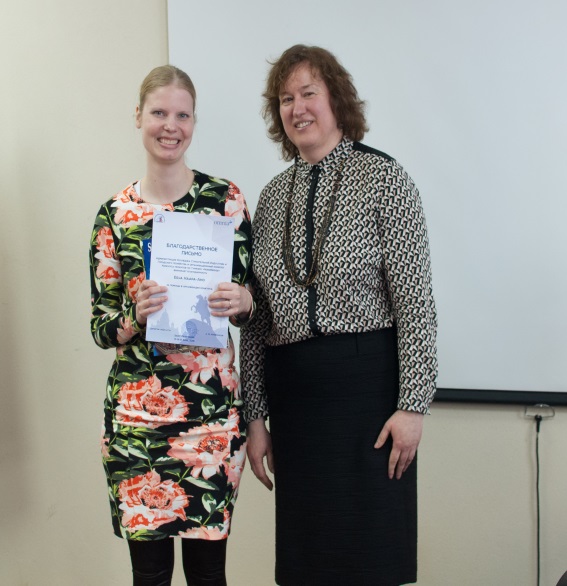Благодарственные письма были вручены преподавателям, которые помогали участникам готовить презентации к конкурсу, Семеновой Ольге Сергеевне и ErjaHaapa-Aho.