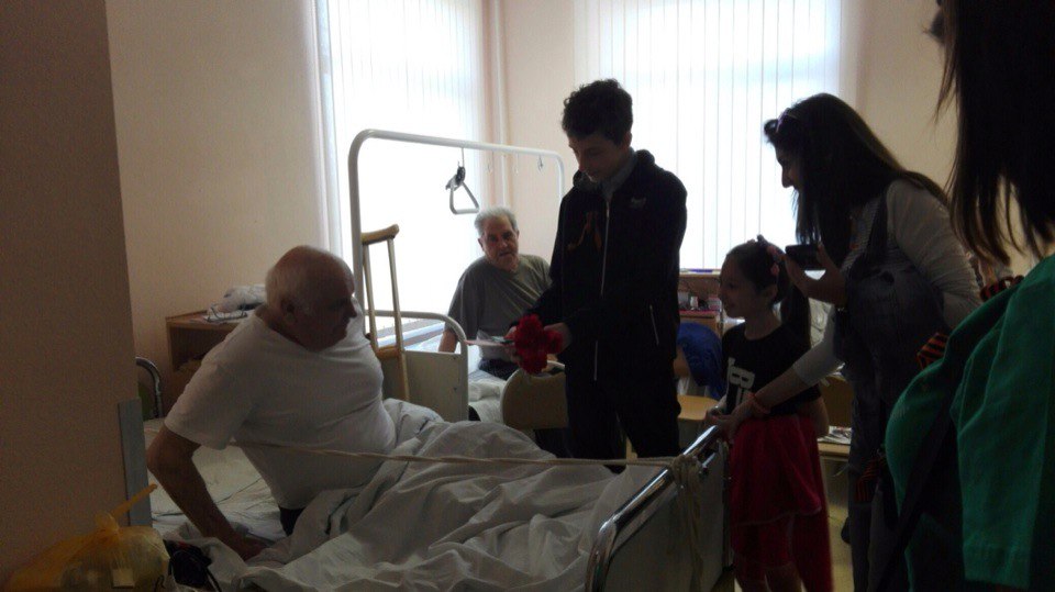 Утром 9 мая студенты нашего колледжа приняли участие в акции «Праздник для каждого» организованной Молодежной приемной, Молодежным Советом и волонтерами Добровольческого агентства калининского района. Ребята поздравили с великим праздником Днем Победы ветеранов, жителей блокадного Ленинграда, бывших малолетних узников фашистских лагерей, находящихся на стационарном лечении в больницах Калининского района.