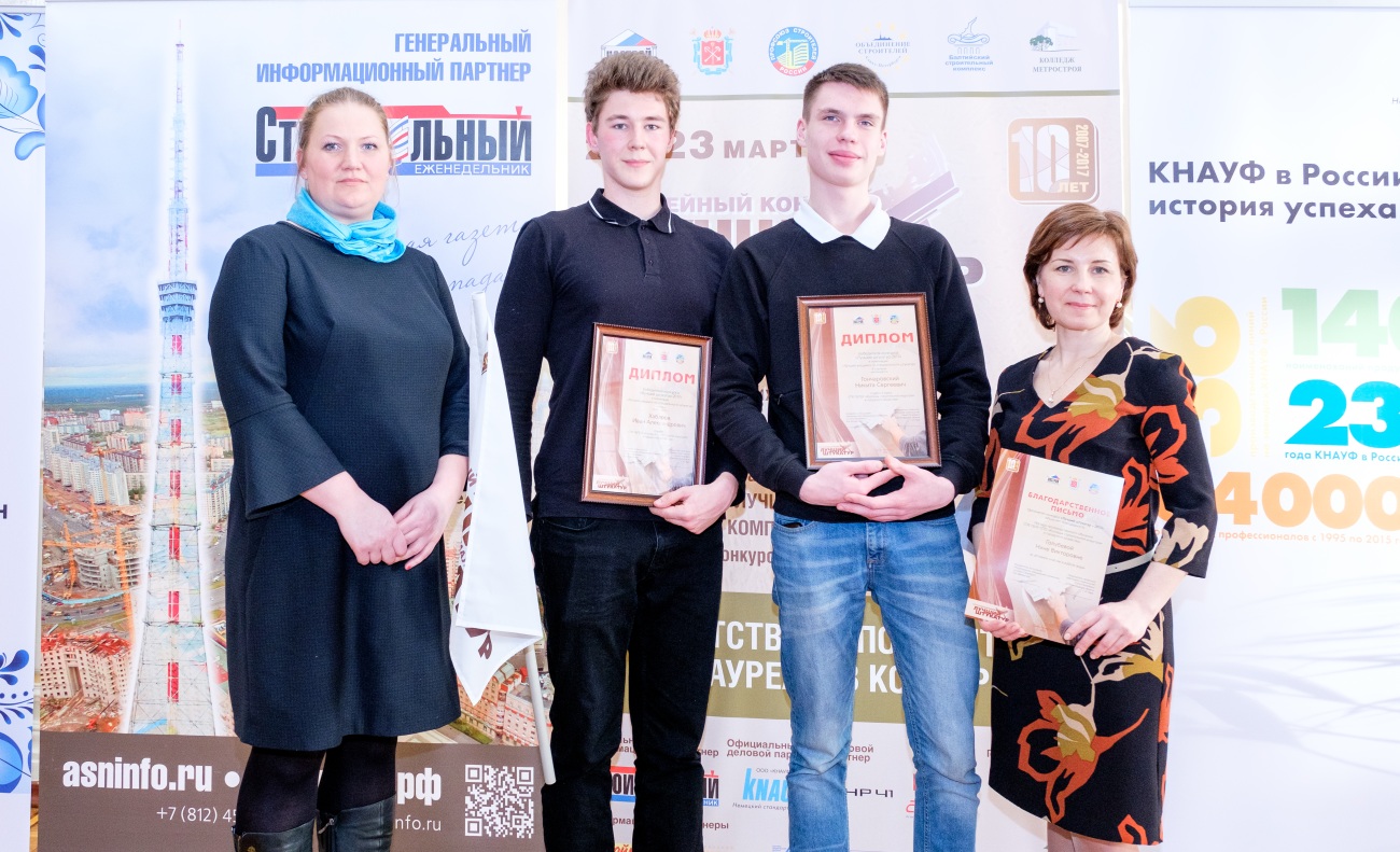 23 марта во Дворце труда прошла торжественная церемония награждения. По решению жюри в номинации «Лучший учащийся по специальности штукатур» победили студенты «Колледжа строительной индустрии и городского хозяйства» Иван Хабаров – ставший победителем конкурса и Гончаровский Никита занявший второе место.