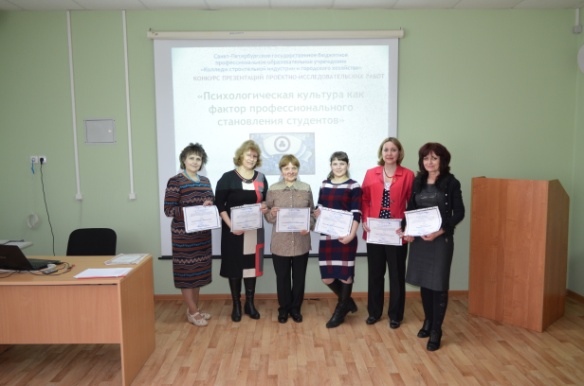 14 апреля 2017 г. в СПб ГБПОУ «Колледж строительной индустрии и городского хозяйства» прошел городской конкурс презентаций проектно-исследовательских работ в рамках работы сектора общеобразовательного цикла дисциплин УМС УМО КНВШ.