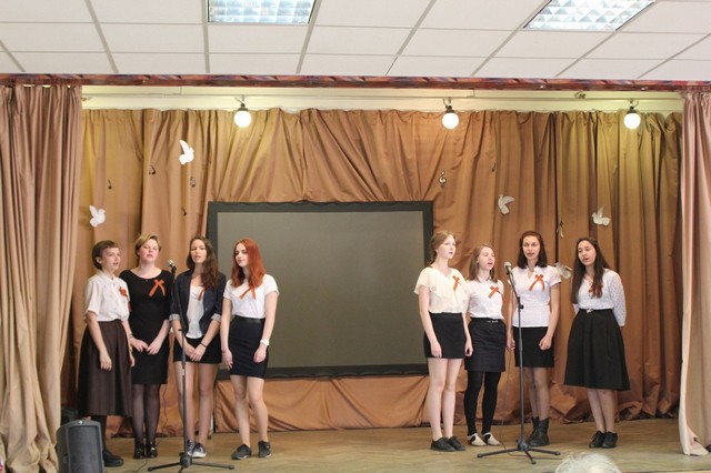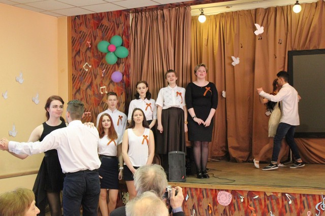 Студенты колледжа своими творческими выступлениями поздравили ветеранов. Каждому вручили букетик из гвоздик, на грудь прикололи георгиевскую ленточку.