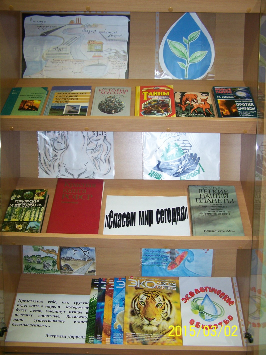 В библиотеке на ул. Руставели оформлена выставка, информационный стенд и подборка материалов с целью экологического образования студентов и получения специальных знаний по охране окружающей среды, природопользованию и экологической безопасности.