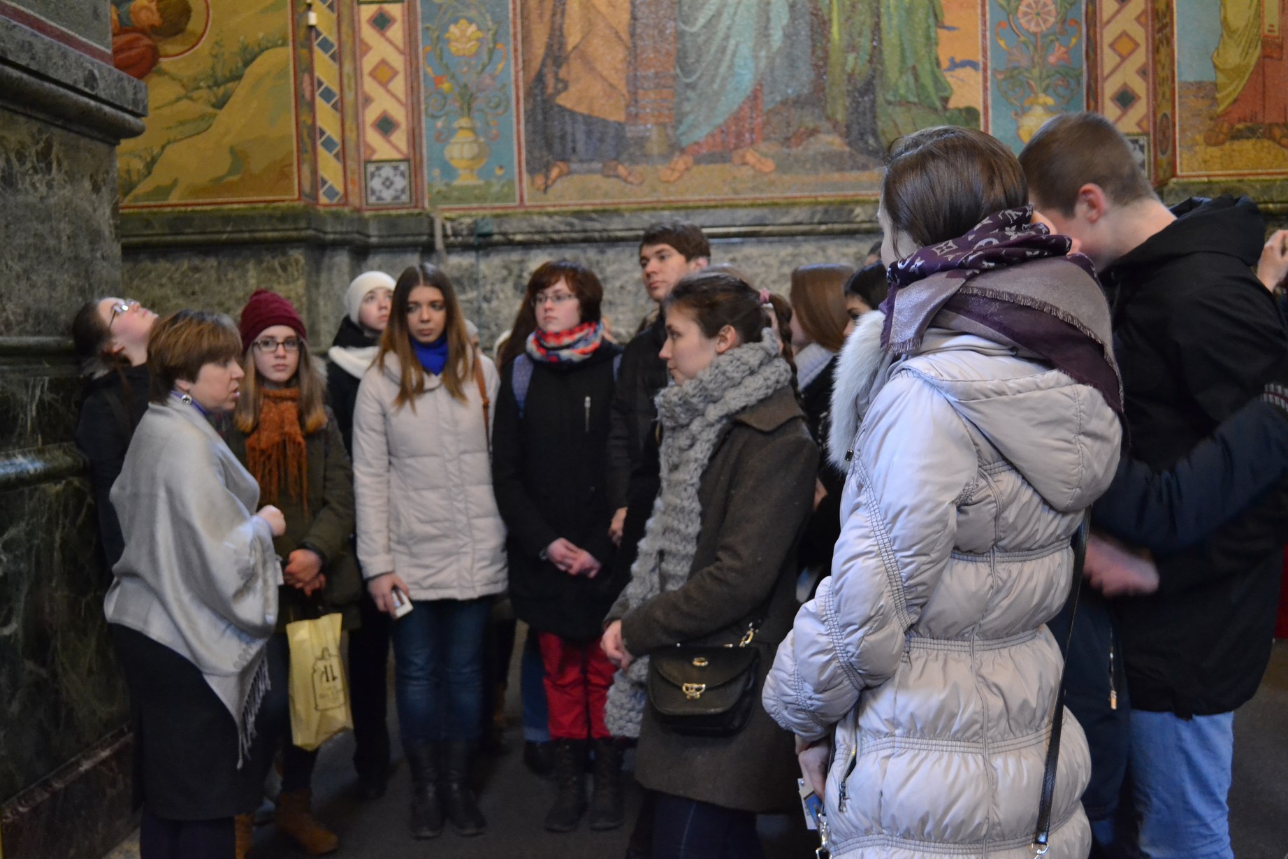 7 марта 2015 года состоялась экскурсия для студентов первого курса групп 9А-12к и 9 ДЗ-11 в Собор Воскресения Христова (Спас на Крови) с преподавателями иностранного языка Хедер Е.Н, Головакиной Е.Н. и Лаврухиной Н.А..