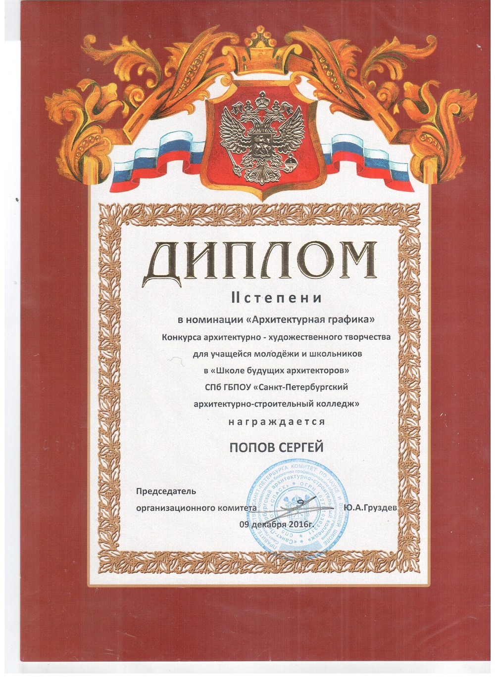 - Попов Сергей, группа 9А-21 , 2-е место номинация «Архитектурная графика»;