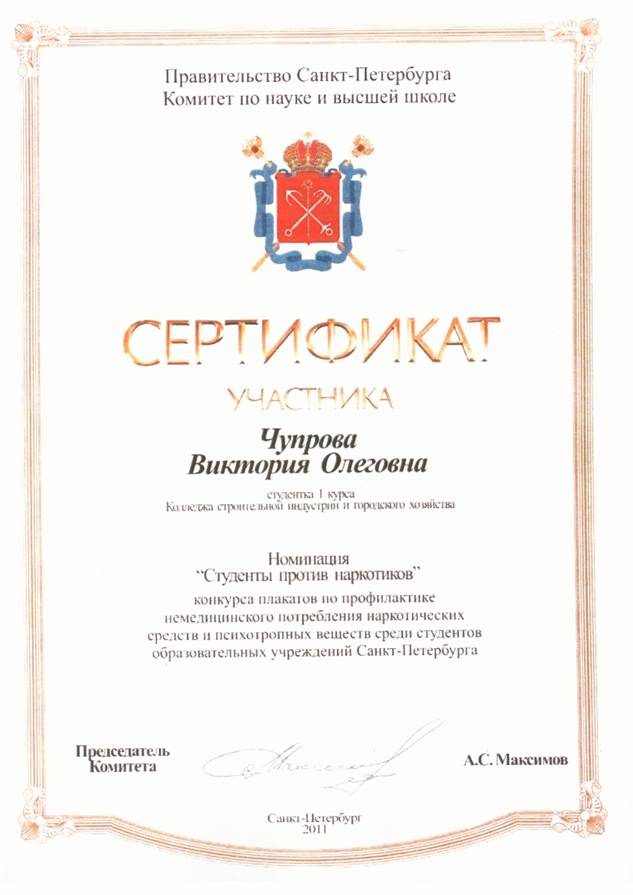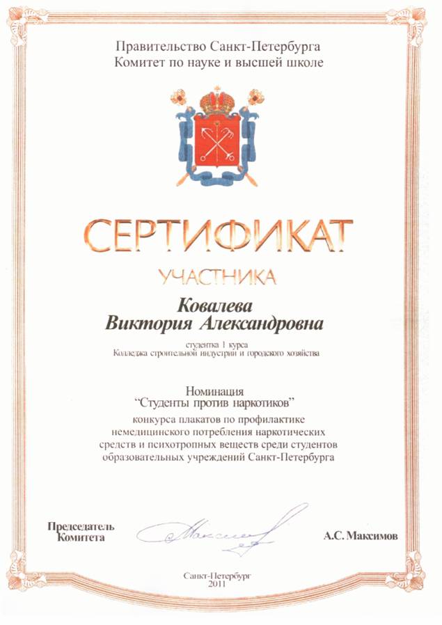 Студентам колледжа строительной индустрии и городского хозяйства также были вручены Сертификаты за активное участие.