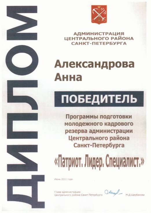 Весной-летом 2011 года студенты Колледжа строительной индустрии и городского хозяйства Александрова Анна, Маевский Александр, Горбачева Виктория, Складчиков Сергей участвовали в программе подготовки молодежного кадрового резерва Администрации Центрального района Санкт-Петербурга «Патриот. Лидер. Специалист.».