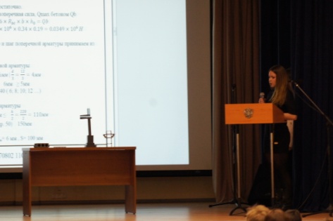 В конференции приняли участие студенты гр. 11 С-37 Бускина Алена, Романова Юлия, Комарова Арина, гр.9С-41 Кривоколяско Татьяна, Смекалова Светлана, научный руководитель - преподаватель высшей категории Т.С. Кудряшова. Ребята выступили с докладами: «Расчет многопустотной плиты перекрытия ПК-1»; «Расчет колонны 1 этажа среднего ряда».