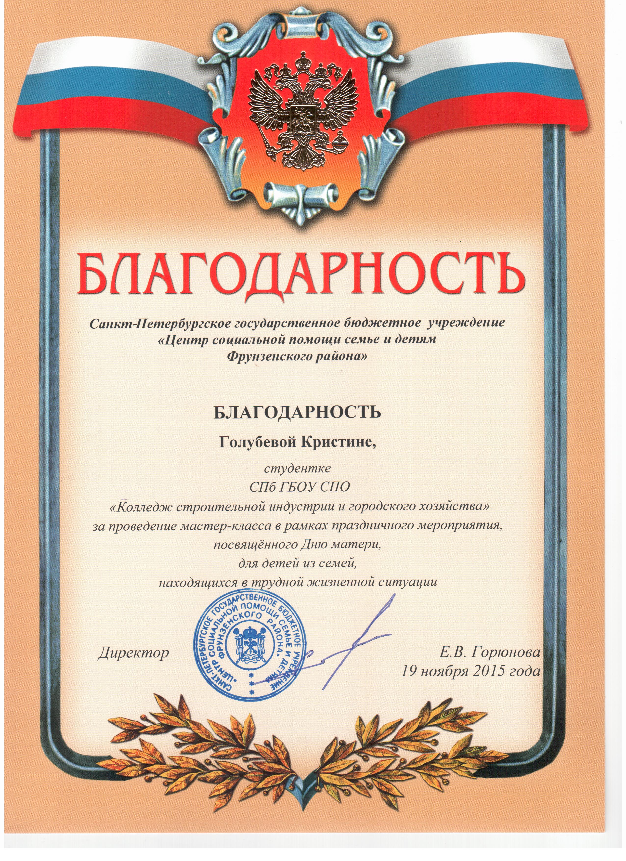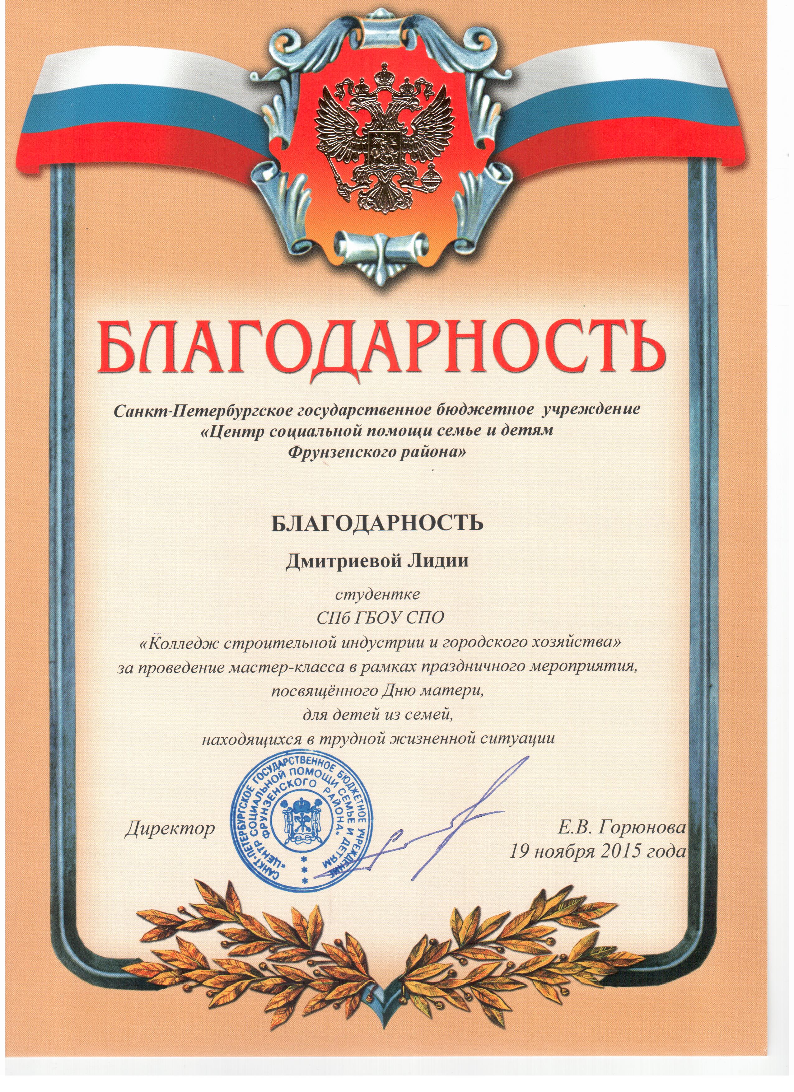 19 ноября 2015 года студентки-волонтёры нашего колледжа приняли участие в праздничном мероприятии , посвященном Дню Матери. Девочки провели мастер классы для детей в «Центре социальной помощи семье и детям Фрунзенского района».