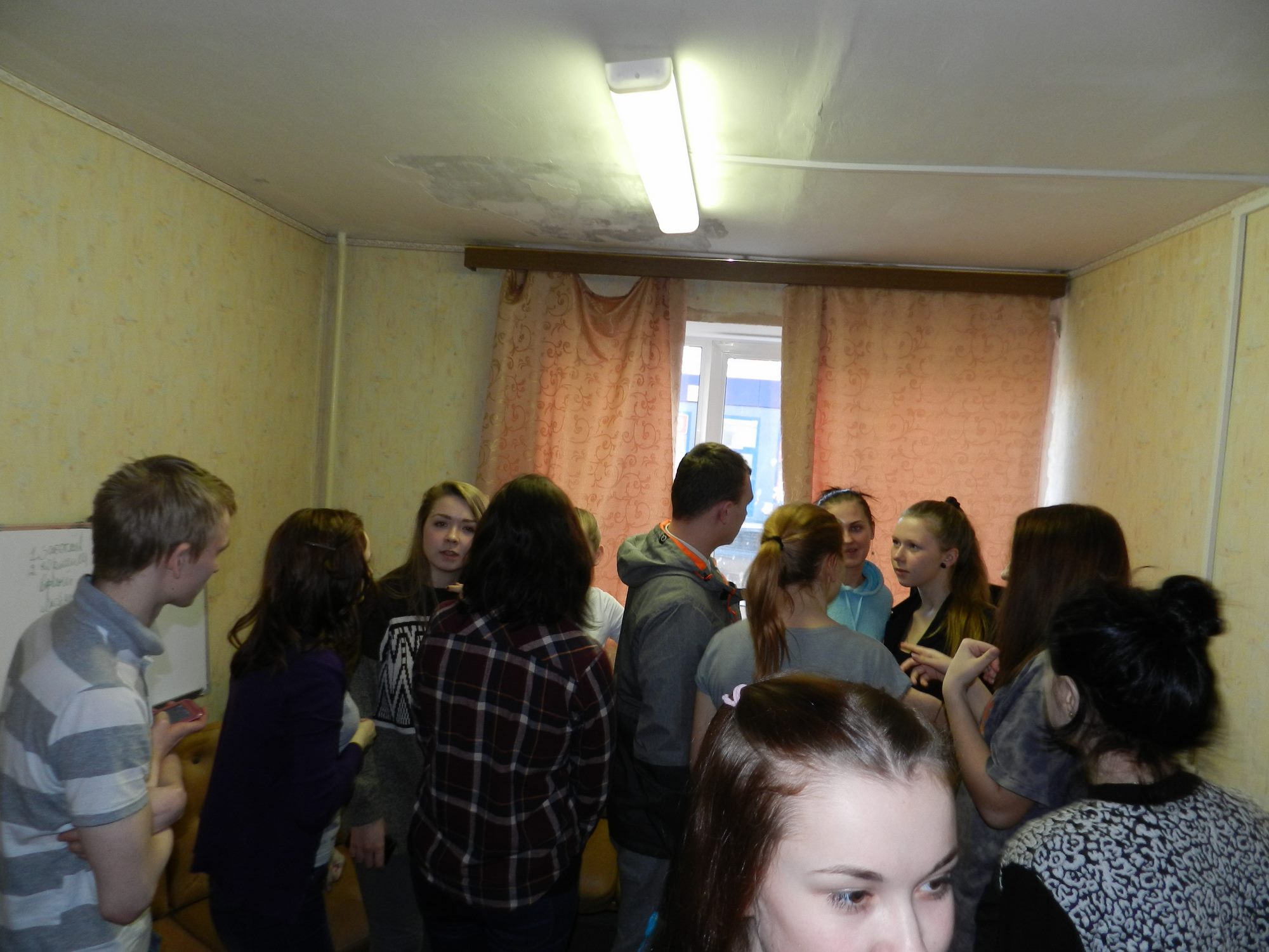 В апреле-мае 2014 года в общежитии нашего колледжа (ул.Вавиловых, д.10/4) проходит серия психологических тренингов, направленных на эмоциональное раскрепощение и улучшение психологической атмосферы среди студентов, проживающих в общежитии. Занятия проводят специалисты-псих