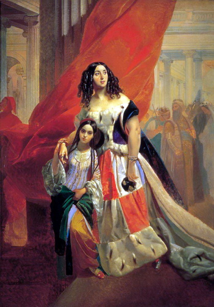 Брюллов Карл Павлович (1799-1852): Портрет графини Юлии Павловны Самойловой, удаляющейся с бала с приёмной дочерью Амацилией Паччини. Не позднее 1842